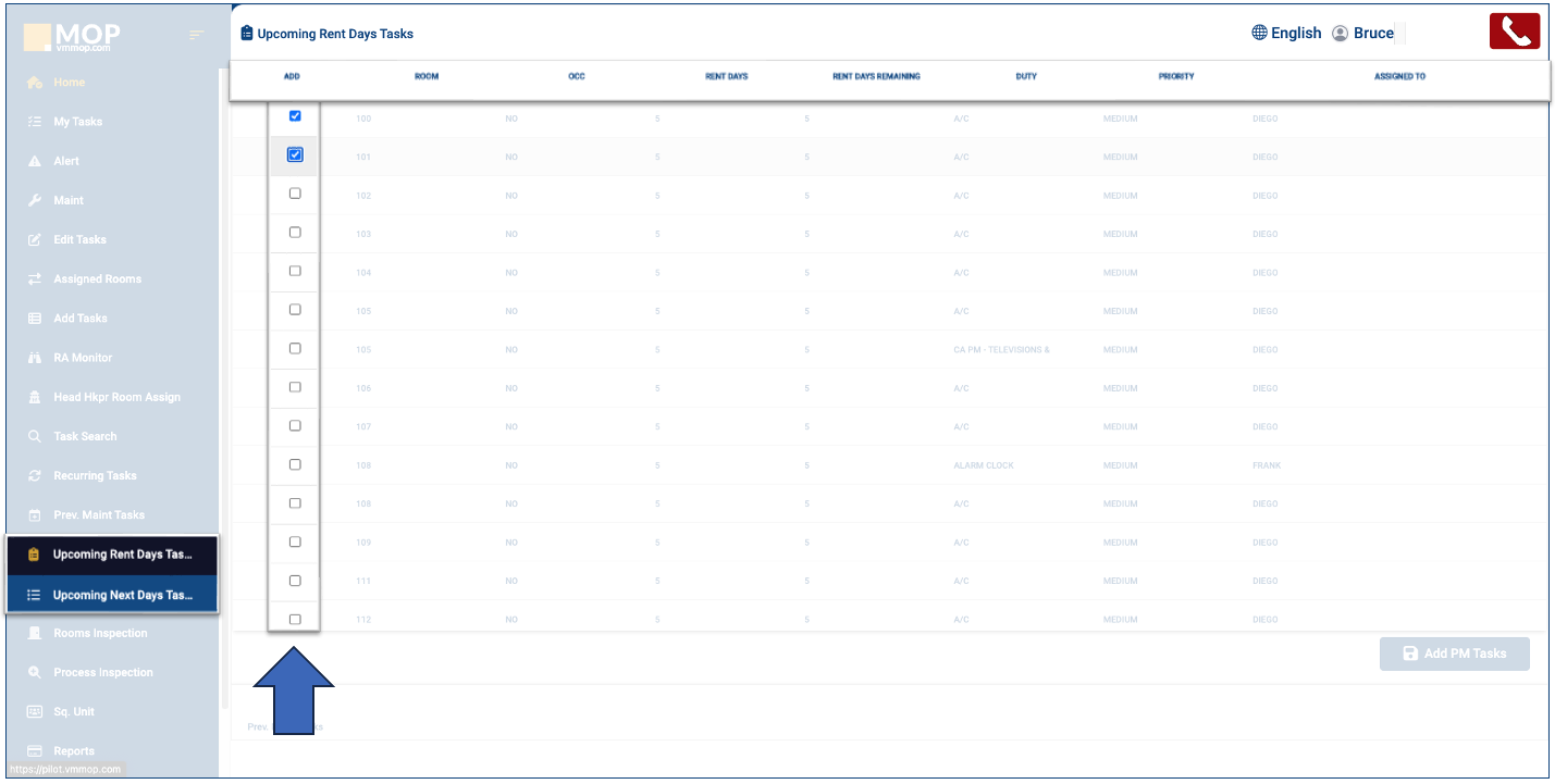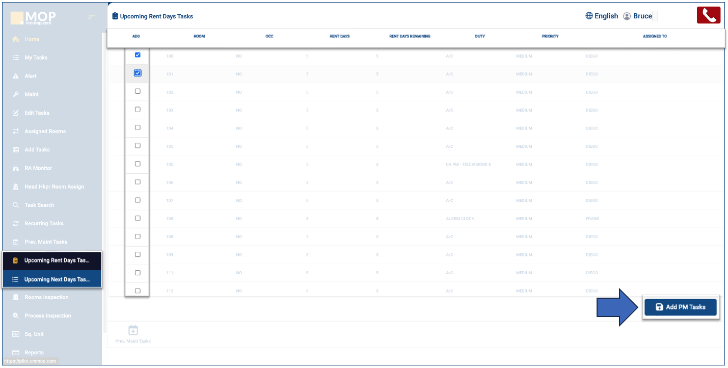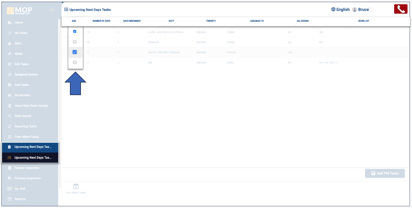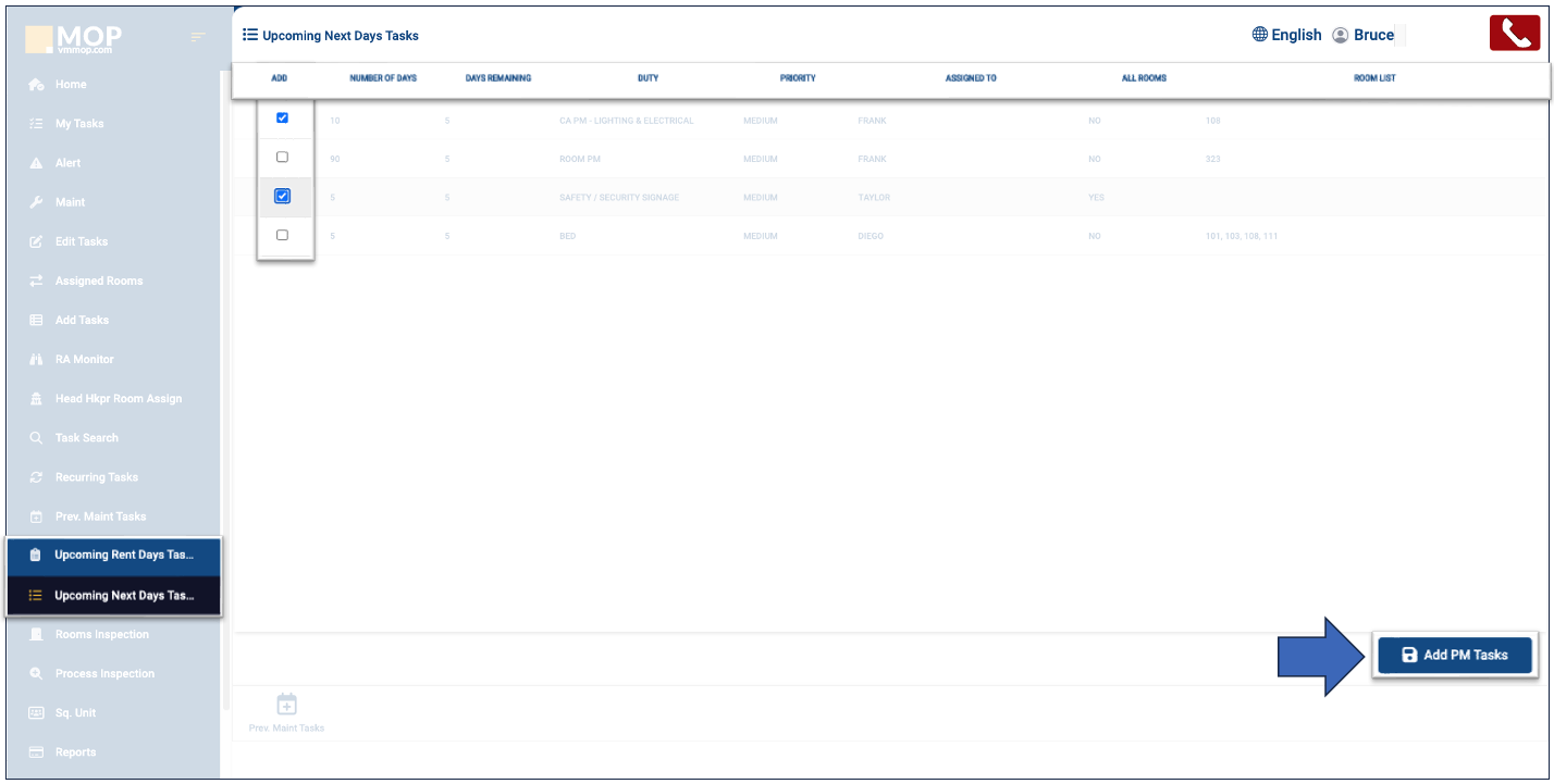 2. To assign the task before its scheduled time, click "Add PM Tasks" located at the bottom right.