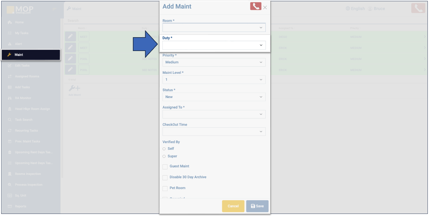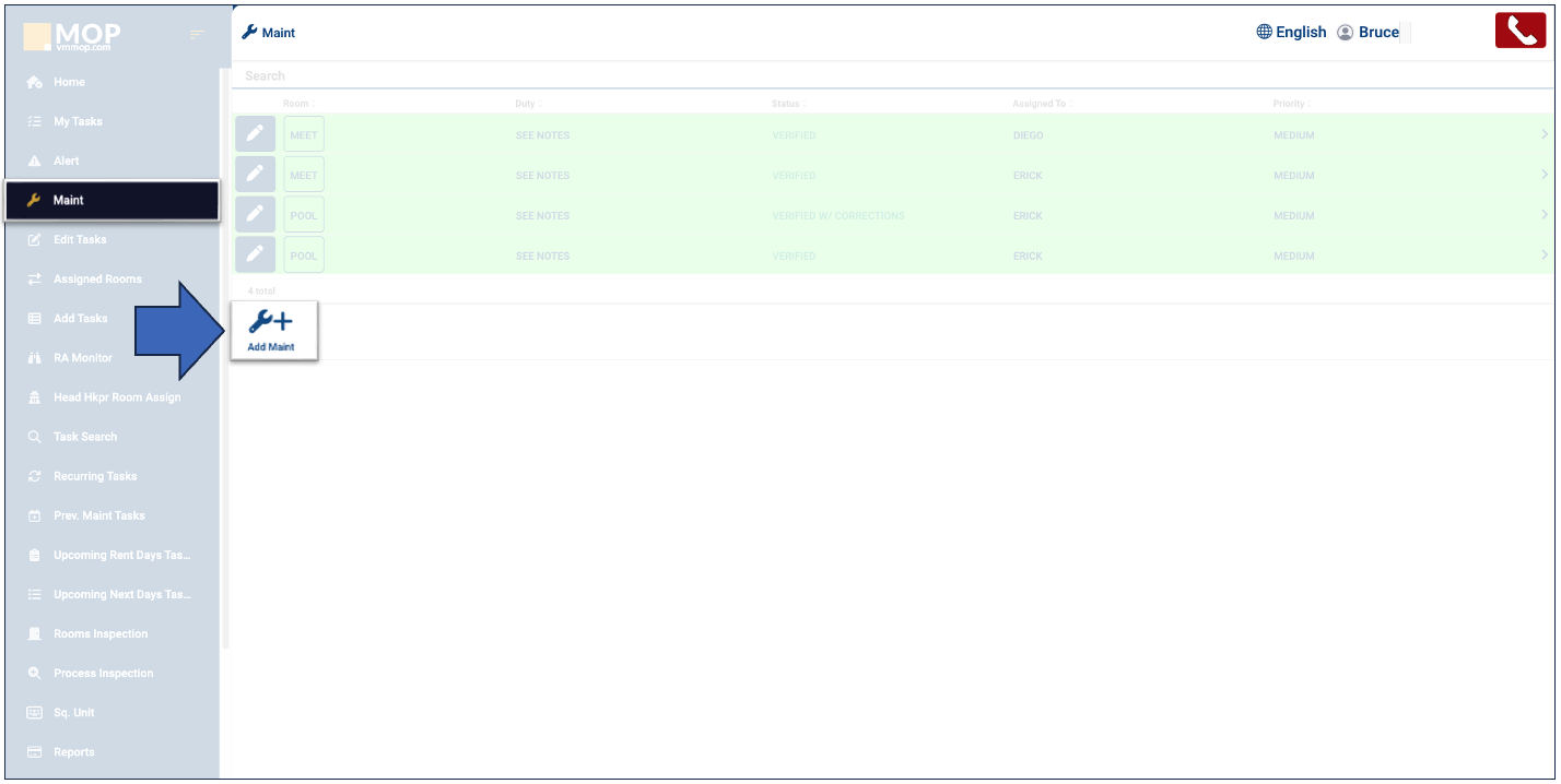 1. Click on "Add Maint".