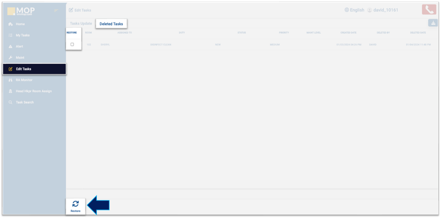 Restore a Deleted Task (MOP 2.0)